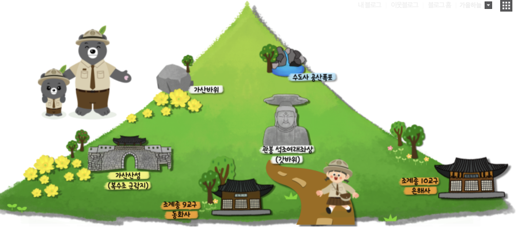 - 특징 : 서울 시내와 가까운 접근성, 다양한 등산 코스, 전통 공연, 먹거리 장터