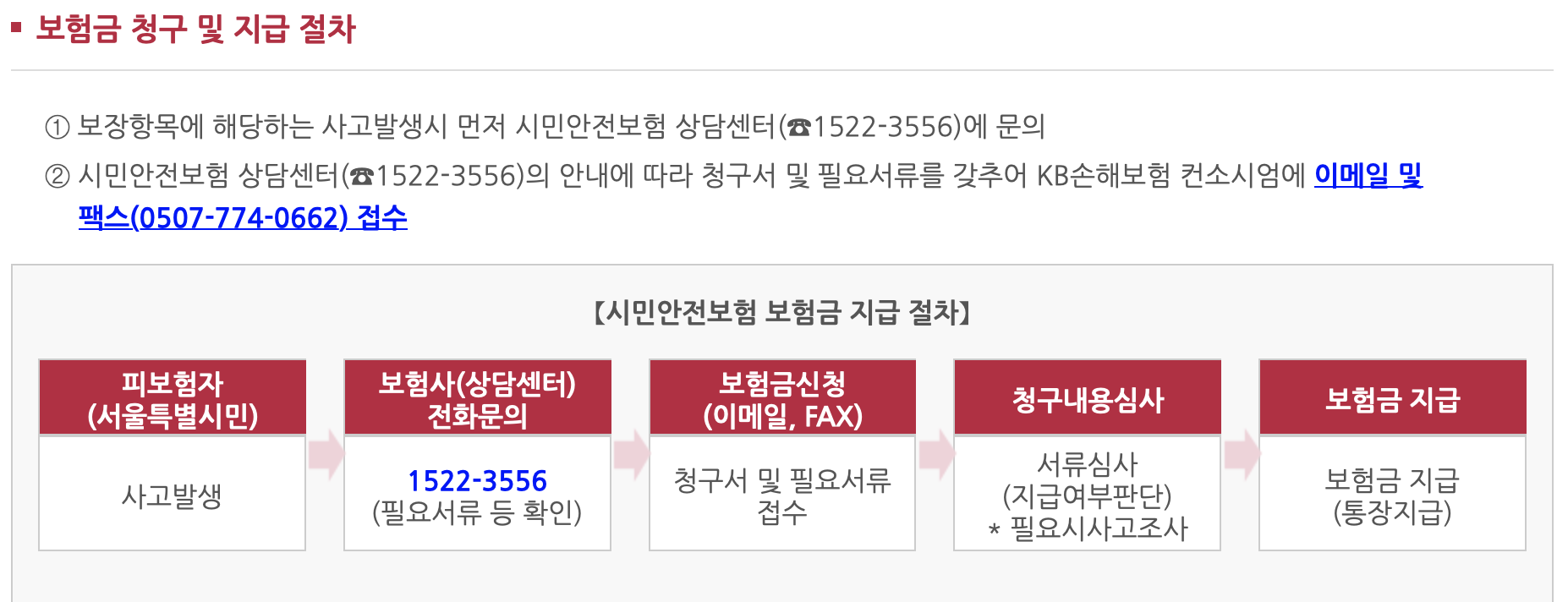 보험금 청구 방법은 매우 간단하지만 각 지자체마다 청구 방법 및 청구 서류가 상이할 수 있으므로 해당지자체 및 국민재난안전 포털을 통해 필요 서류를 확인하고 발생일로부터 3년 이내에 청구해야 합니다