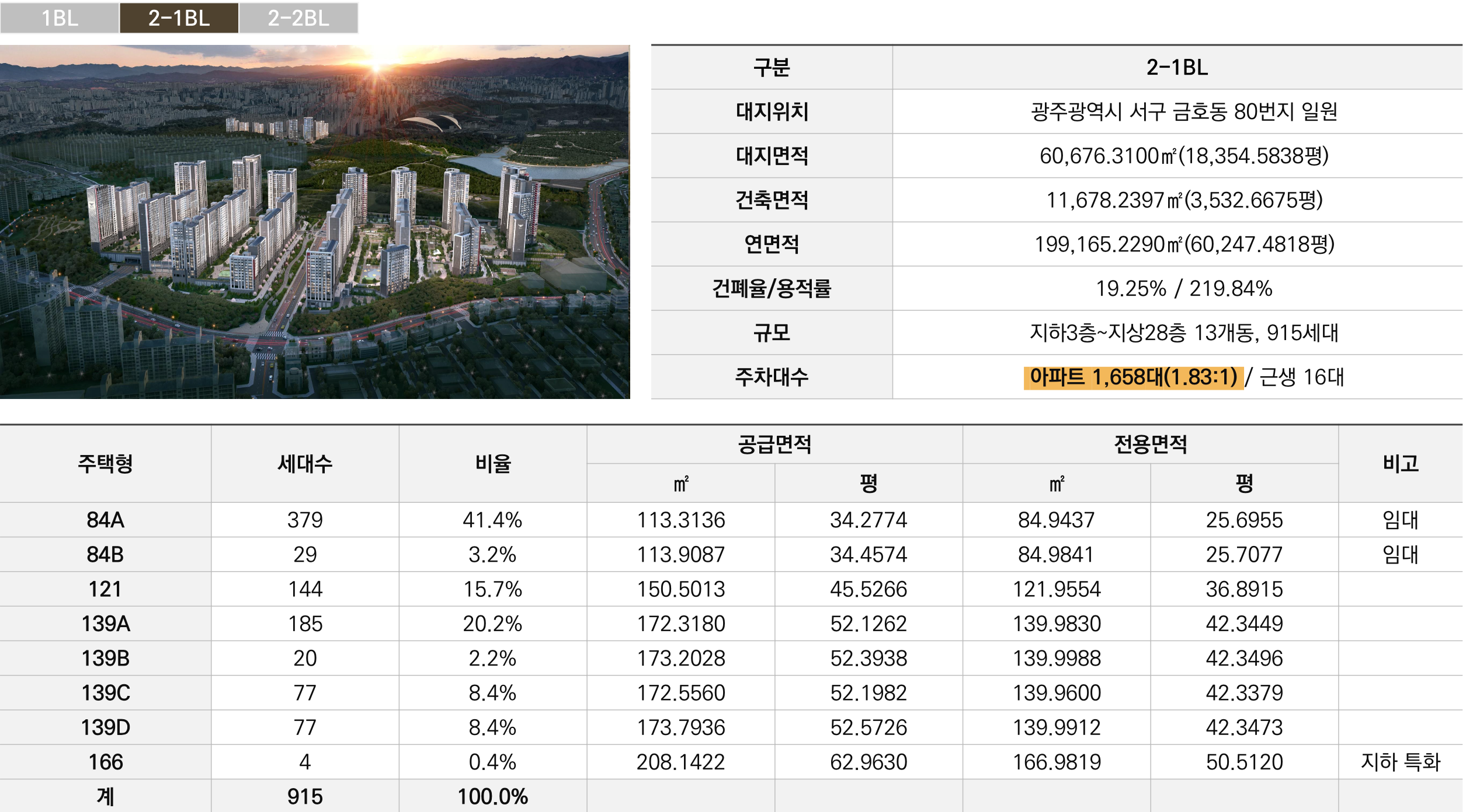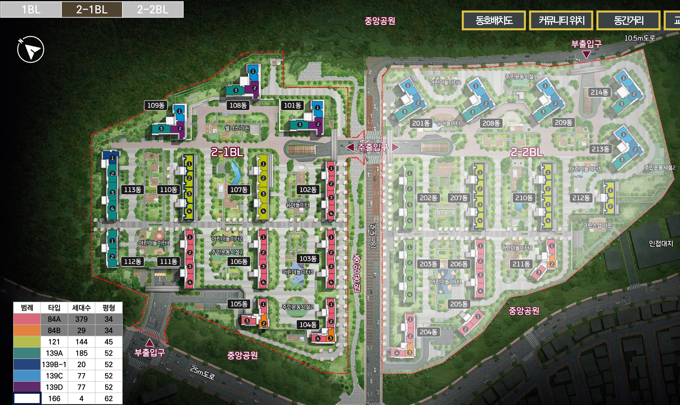 • 2-1 블록 : 915세대, 중대형 평형 (46평~62평)