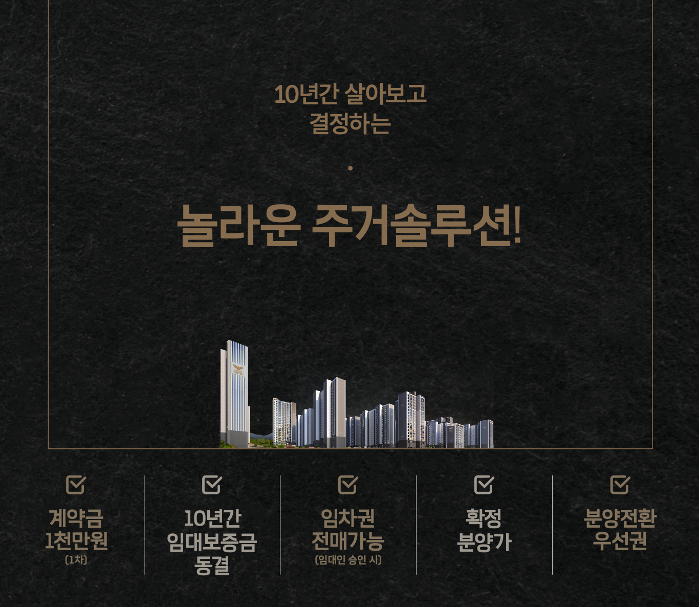 - 10년 후 선택: 분양 전환 또는 퇴거 중 선택 가능