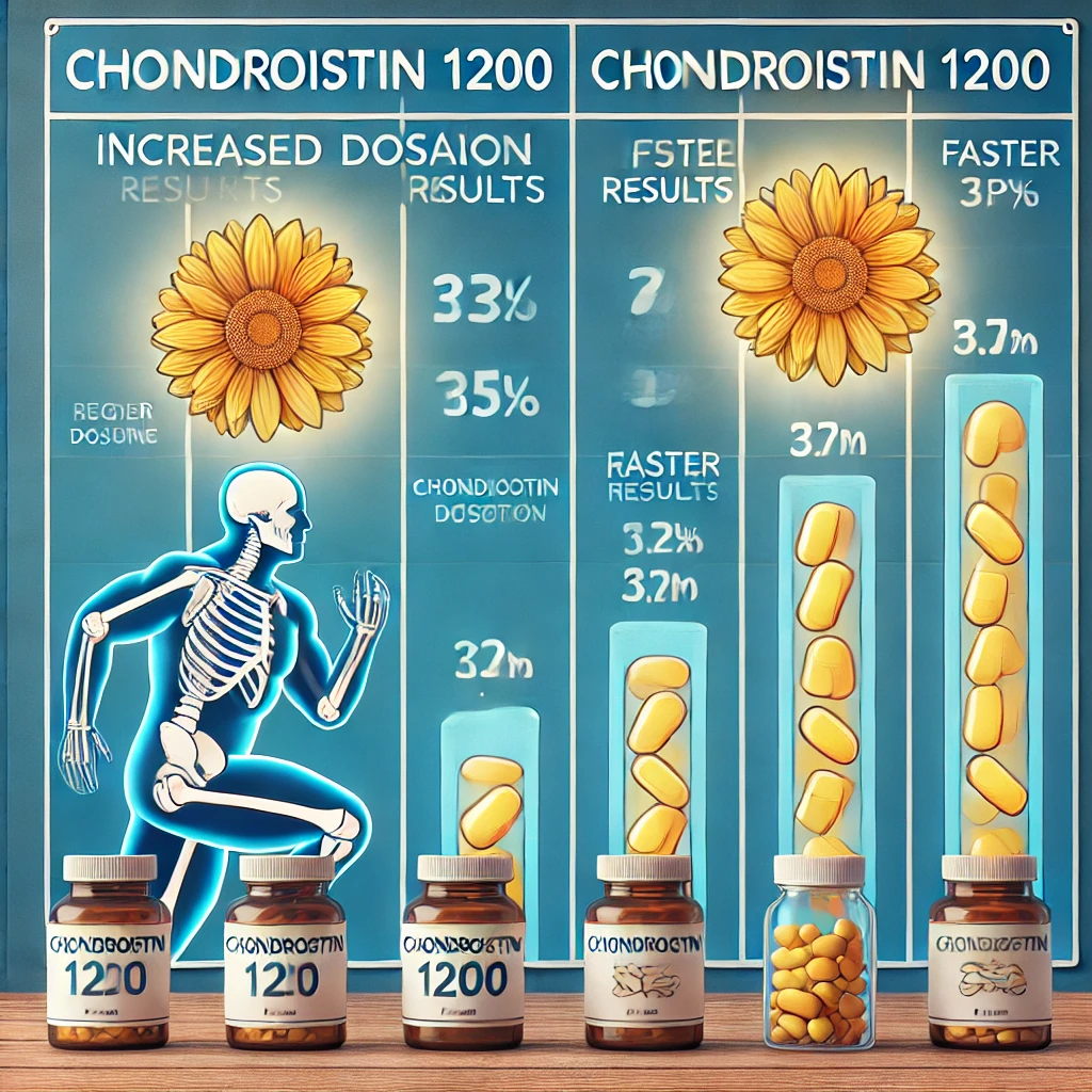 • 일반적인 콘드로이친은 저용량으로 제공되며 효과가 나타나기까지 시간이 걸릴 수 있는 반면에 콘드로이친 1200은 고용량으로 빠른 효과를 기대할 수 있으며 고함량 제품은 하루 섭취 횟수가 적어 편리하게 사용할 수 있습니다.